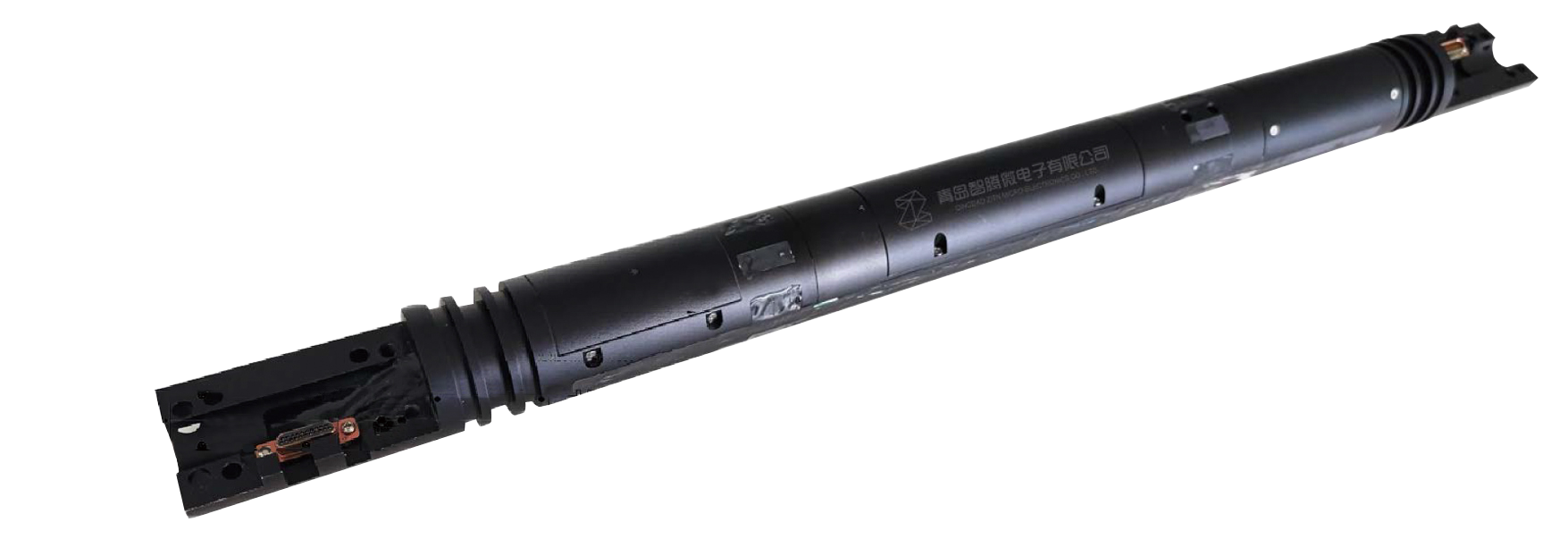 MS590高分辨率扇区定位传感器包含3个磁通门传感器、3个mems加速度传感器。MS590应用于LWD仪器和近钻头仪器,尤其是随钻电成像仪器中,在高速转动下提供高分辨率的扇区信息。传感器具有动静态检测功能,在静态时自动测量井斜、方位以及磁倾角,转动时高速采集磁分量数据(采样率 高达4000Hz),并使用静态测量的井斜、方位参数参与运算,计算出转动实时的重力工具面角数据。可根据重力工具面角的数值区分不同的扇区,在每分钟300转的情况下,工具面角的分辨率高达0.5°。工具面角数据通过RS-485接口输出,输出数据更新速率可达250次/秒。传感器还可以输出静态测量的井斜、方位、重力和、磁场和等参数。